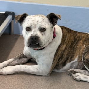 I may be small, but my heart is mighty. I came into rescue as a stray while getting the vet care I needed, and with a little patience (and a friendly canine roommate) I found my confidence. I may start out shy, but once I trust you, my sweet, affectionate side shines. I have a slight limp in my right hind leg from an old injury, so marathons aren’t my thing — but cozy walks, couch time, and loving companionship absolutely are. I’m under 40 pounds, perfectly “fun-sized,” with a cute tail nub, a beautiful brindle-and-white-spotted coat, and an underbite that steals hearts. If you’re looking for a gentle soul who believes in LOLA — Lots of Love Always — I’m ready to bring it into your life for 2026 and beyond.