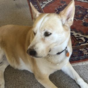 Molly is a sweet and affectionate 8-year-old, 75-pound Canaan Dog female who needs a new home. She is housebroken and asks to go out. She is in good health, spayed, up to date on shots, and medical records are available. She is very well leash trained and has been able to run up to 4 miles a day. She has excellent obedience training (knows “sit,” “stop,” “cookie,” “snuggle,” and others; she would love to learn more). Molly gets along with most other dogs; cats and children are unknown. She likes car rides. She loves to relax and snuggle and prefers to sleep with her person.