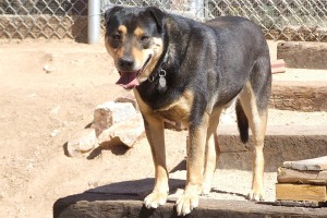 Our people had good things to say about my Chow friend Honey and me, but they had to keep us tied up and knew that wasn’t good for us. (They’re raising farm animals and had to keep us away from the chickens and turkeys.) We were both “found” dogs, so we’re grateful for the years with them and appreciate their good reports, like when they said that I’m loving to people, gentle and tolerant with children. I’m leash trained, and love to play, run, and fetch. Please come see me and give me a chance to show you what a fun-loving guy I can be. I’m a 5-year-old black and tan Rottie mix male, a real handsome guy with a happy zest for life. If you take me home, you’ll be my hero forever!