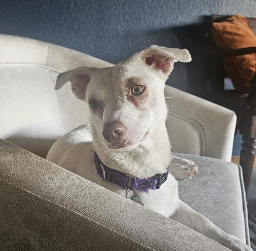 I’m a naturally curious pup who likes to take the world in one thoughtful moment at a time. Having a calm, easygoing doggy friend by my side would be perfect for me—it helps me feel safe, grounded, and a little more confident as I explore new things. I’m slowly learning that humans aren’t nearly as scary as I once believed, and I’m beginning to suspect they might actually be kind, patient, and very generous with treats (which I consider a great character trait for 2 leggers). Beneath my cautious exterior lives a soft curiosity, a quiet sweetness, and a gentle sense of humor that reveals itself if you’re paying close attention. I may not rush into the spotlight, but once I trust you, my warmth shines through in subtle, meaningful ways. I’m the kind of pup who blossoms with patience, consistency, and love—and I promise the reward is worth the wait!