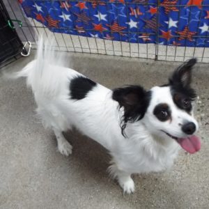 Did you know that the word Papillon is French for “butterfly”? That’s where my breed gets its name, and you can see it perfectly embodied in my gorgeous butterfly-shaped ears AND the fact that I’m quite the social butterfly once I get to know you. I’m a handsome, alert, intelligent guy with a plumed tail, silky coat, and a zest for life. I love knowing what is going on around me, and I love to be at your feet or in your lap to make sure I’m privy to the latest gossip. I walk well on a leash and arrived at TALGV with a Chihuahua buddy, so I am probably okay with other dogs. If you’re interested in a gorgeous boy who also loves to dish the latest news, I’m waiting for you.