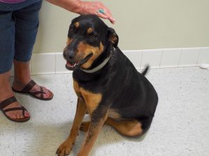I love people. Indeed, I’ve been reported to “talk” to people, (not barking, but my own verbal communication), and since I like people so much, you know my message is all good! However, I was living with four other dogs and the time came when we no longer played nicely together. Our person felt the trouble was between me and the other female dogs in the household, so I’d be happiest as your only dog. And I’m ready to love someone new! Granted, I’m sometimes shy, but always smart, too; I’ve been taught a couple of commands and I’m good on a leash. A young Doberman mix female, 64 pounds, I’ve never been around kids or cats, but I excel at being a person’s companion. Won’t you give me the chance to be yours? (bio dated June 2017)