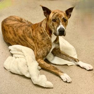 I’m a delightful blend of Greyhound and Great Dane wrapped into one gentle, intelligent girl… ME! I’m affectionate and love to cuddle. I walk well on a leash, know several commands and am willing to learn new things. I’ve gotten along with other dogs and children, and I’m good when left alone (in the house). Being a natural runner I should never be off-leash in unsecured areas. I’ll chase any small animals, like bunnies, cats etc., so NO small pets in the home please! In the past, when I’ve been bored, I’ve left home to visit neighbors or just to explore, so don’t leave me outside alone! If you can supply this wannabe couch potato with mental stimulation, take me on regular walks, and love me unconditionally, I’ll be yours forever!