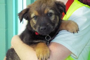 My siblings and I were born and found living under a trailer. Our little spot was in the shade, but not a place where we could grow up, and the person nearby already had several dogs. So we came here; happy, fun-loving puppies ready for life’s next big adventure! We’re already very good at puppy things—eating, playing, rolling on top of each other—and with time, patience and attention from loving people, we can also become good at the things that will someday make us delightful, well-trained grown-up dogs. (In the meantime, we expect to have lots of puppy-people fun, too!) I’m a black and tan female, 8.8 pounds at 7 weeks and growing, probably a Shepherd/Terrier mix. You may like all puppies, but please say I’m the one you want for keeps!