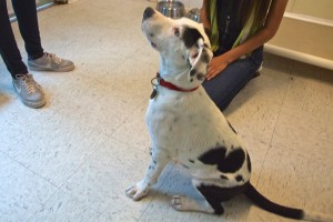 My foster mom and dad report that I’m a typical puppy with lessons to learn; the puppy version of “some assembly required.” I’m also a lucky pup because some great people are helping me learn to be the best dog I can be. Already, I will sit and stay at the door, and I’m learning other important things like how to have fun with other dogs, be quiet in my crate, and good house manners, too. (Turns out the people make the rules – good to know!) I’m a 6-month-old female pup; a 25-pound Dalmation/Staffie mix, white with big and small black spots. I’m an energetic pup who also loves to cuddle—a cuddle bug, they call me—and in my puppy dreams, I imagine my forever home. Could it be with you?