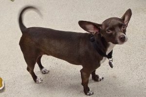 I am an eight-pound Chihuahua with a beautiful chocolate and white coat and big ears! Someone said I should be able to listen well with those huge lobes of mine, and, don’t get me wrong, I hear just fine, but I do have a mind of own, you know? Like many of my breed, I can be sweet and loving and I do enjoy sitting on a lap for a spell. At other times, I just want to be left alone. Kids make me a bit nervous, and so do thunderstorms. But I like car rides and going on walks. I’ve learned stop, sit, and stay, and I can learn more. Although I’m only two years old, I’ve been around a bit and would like to meet someone who can be patient with me.