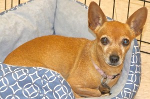 Anyone who’s ever had cholla cactus spines stuck on their fingers knows how utterly awful that is! Well, just imagine having them stuck on your lips and sides! That’s the condition I was in when I was rescued from the Interstate ramp in November. It took quite a bit of doing by the volunteers to get me all “unstuck,” so I’ve been a little “gun shy” ever since, but they’re being extra nice now to make up for it, and say it won’t be long before I forget that ordeal and get on with being a typical, people-loving lady. I’m a Chihuahua girl who, like most of my breed, has just one goal in life: to spend all of my time with my person for many years to come.