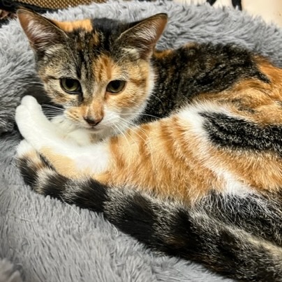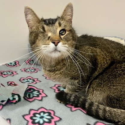 I may be small, but my heart is mighty. I came into rescue as a stray while getting the vet care I needed, and with a little patience (and a friendly canine roommate) I found my confidence. I may start out shy, but once I trust you, my sweet, affectionate side shines. I have a slight limp in my right hind leg from an old injury, so marathons aren’t my thing — but cozy walks, couch time, and loving companionship absolutely are. I’m under 40 pounds, perfectly “fun-sized,” with a cute tail nub, a beautiful brindle-and-white-spotted coat, and an underbite that steals hearts. If you’re looking for a gentle soul who believes in LOLA — Lots of Love Always — I’m ready to bring it into your life for 2026 and beyond.