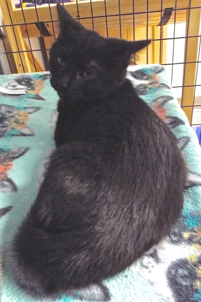 My human was unable to care for me any longer, so here I am at The Animal League. I haven’t been around dogs, or other cats until now, but I was gentle with neighbor children. I have many positive points for you to consider. I like attention and laps, and brushing and petting; and then there is my appearance. My coat is a handsome grey and I have stunning coppery eyes. I’m young enough to give you many years of affection—just give me a chance. Maybe you can put a little imagination into a new name for me? Maybe something a little more…masculine?