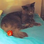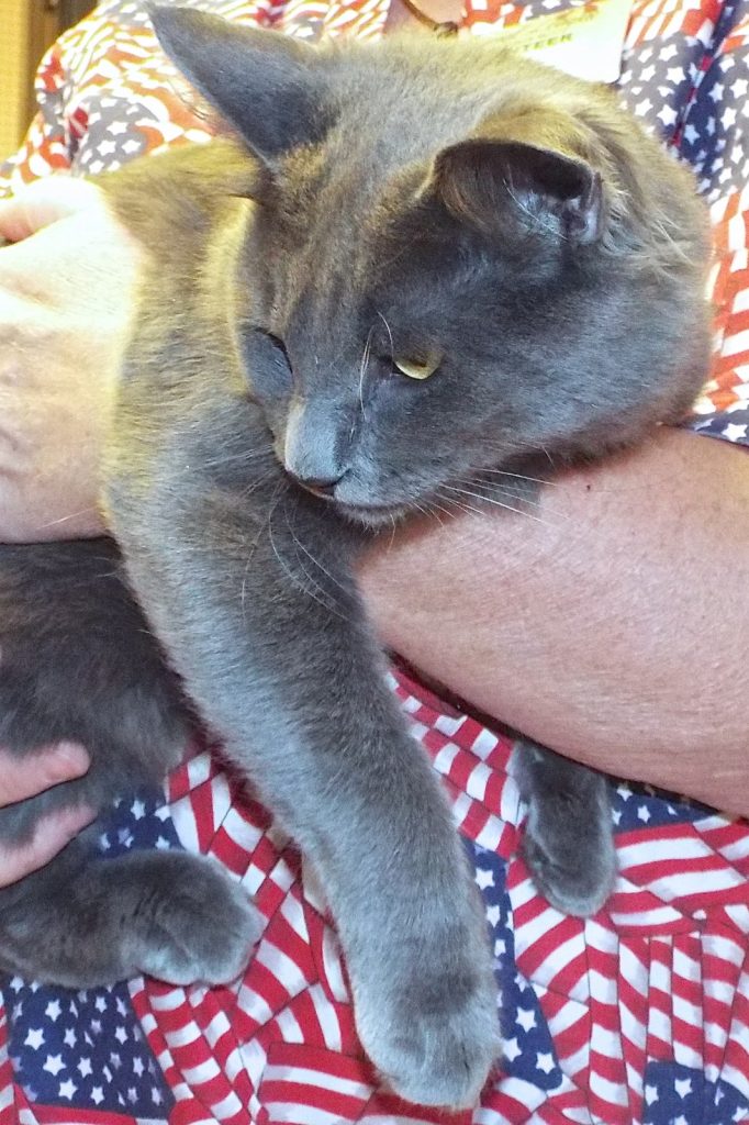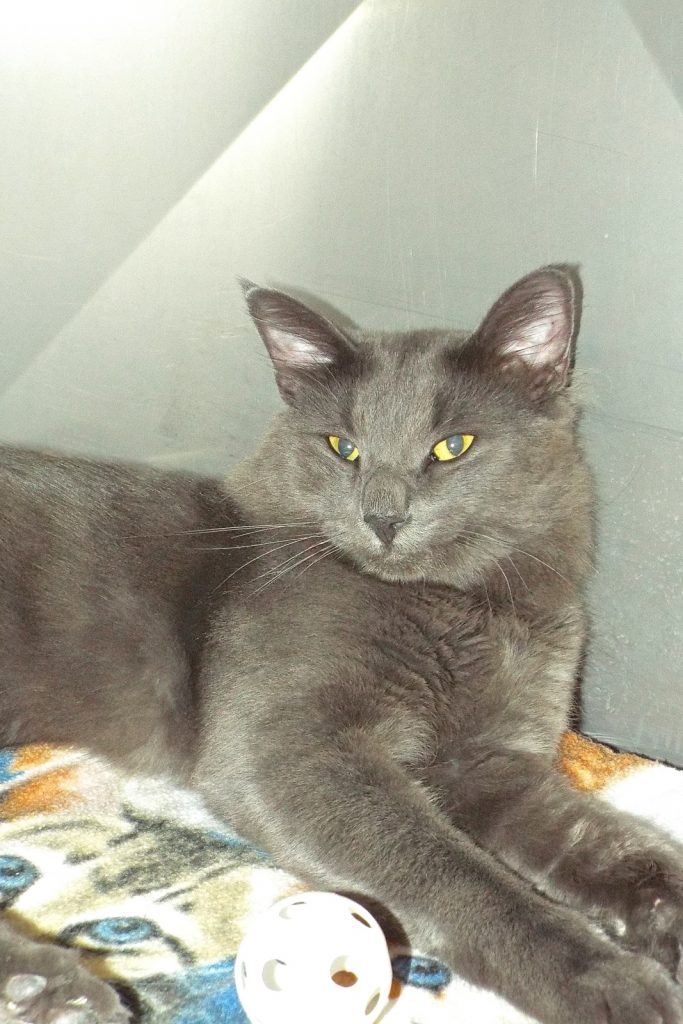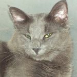 “The silvery blue coat and brilliant green eyes of the Russian Blue draw immediate attention, but it’s the intelligent and playful disposition that makes them perfect pets for most households. They’re gentle cats with a somewhat shy nature around strangers, but are devoted to and affectionate with their loved ones. They’ll greet you at the door, find a quiet seat next to you, or fetch a toy at playtime. Relatively quiet-voiced (except perhaps at mealtime!), they appreciate a pat on the head, a window from which to watch the birds, and, of course, the comforts of home.” OK, no one knows for SURE that’s what I am because I was a stray, but I fit that description to a “T” so I know we’d make beautiful music together!