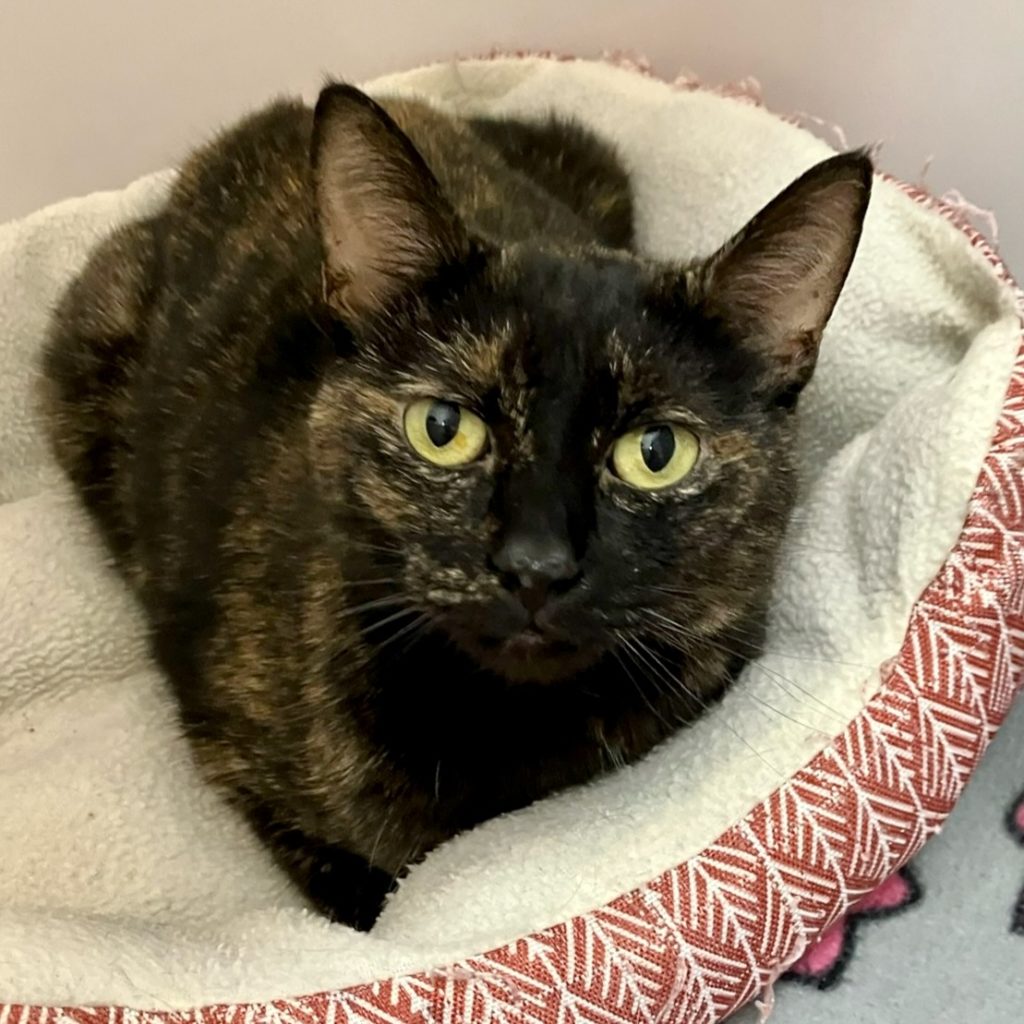 After spending a few years out and about, a nice couple took me into their home and I was very happy there for about 6 years. Unfortunately dad’s health is causing them to move and I can’t go with. While I was outside I tolerated certain other cats, but I’ve never had to live with any of them. I liked sleeping with mom and dad and they say I’m a real sweetheart. If I wanted to be petted I would tap their arm, or raise up on my hind legs to reach their hands. I’ve never been around children and probably not dogs, either. P.S. BK stands for Black Kitty!