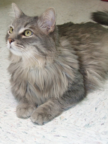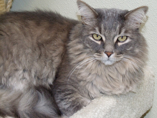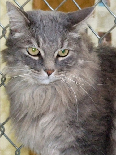 Do you have any idea how disheartening it is to have the “distinction” of being the longest tenured cat at TALGV? And the one with the most “ins and outs!” And dagnabbit, it’s not my fault! Okay, maybe it is to a degree — I DO NOT get along well with other cats — but people knew that when they adopted me, and when I proved them right, back I came! I’m a longhaired, oh-so-handsome and mellow grey and white gentleman (and now eligible for Free Vet Care for Life), who still likes an occasional romp, playing with catnip mice, and cuddling with you (on my terms!), so if you don’t have another feline, then I think you could be my salvation. Won’t you please be patient and make that happen for me?