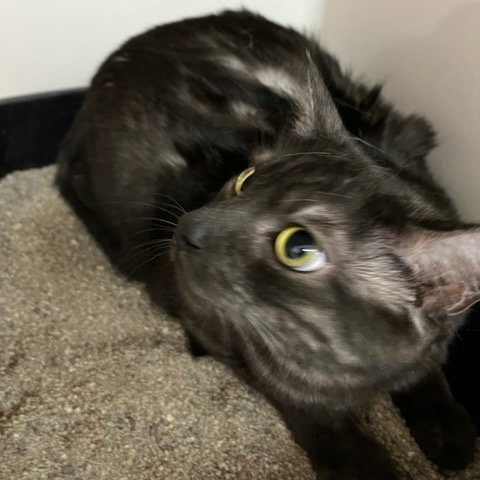 Our family was moving out of the country and couldn’t take me and my brother Jasper. We are only two years old so I’m hoping we can find a new home quickly and start the rest of our lives. We need to go together! We are beautiful dark boys, with a light undercoat and black top coat. We have a hint of darker stripes too. I’ve been roaming around my room here to check out everyone as they enter. We are both friendly and like to be petted. Our family says we are good with kids (they had three) and a dog. We like to play, too.