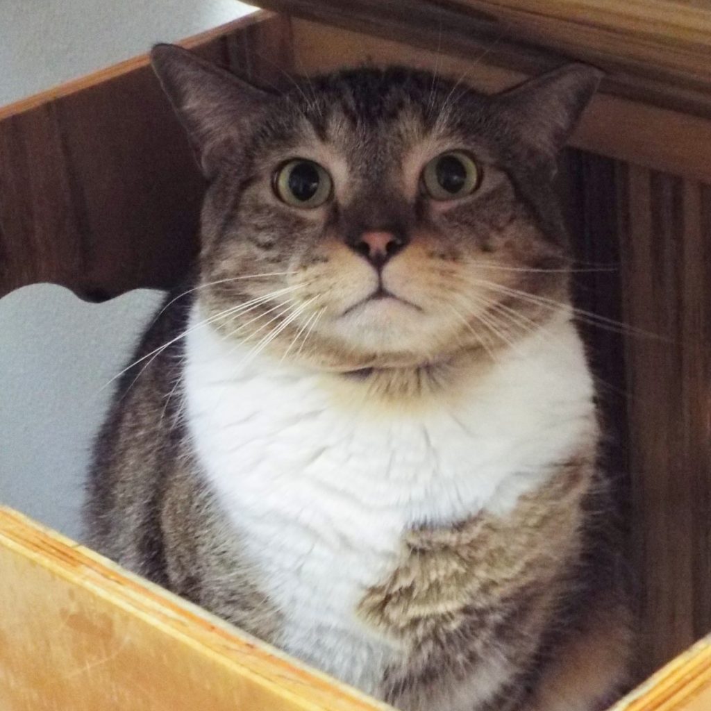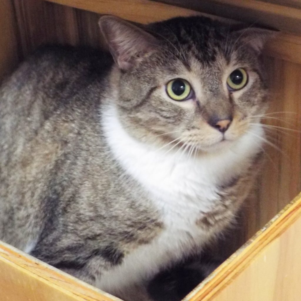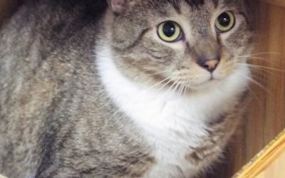 When the folks decided they had too many pets, three of us cats came to The Animal League. We’re all taking time to adjust to our new digs and it’s been a little rough. I spend my time in a wall cubby, sometimes with one of my buddies. I haven’t yet gotten used to humans trying to touch me. I’m a young boy with a tabby coat with patches of white. What would suit me best is a quiet home with a patient owner who could help me feel safe and let my better nature come out. Could you give me a chance?