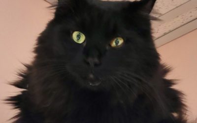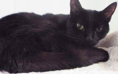 I’m as dark as a moonless night, but I have the softest fur in town! I’m waiting for a new place to call “home” since my humans could no longer care for me. My long coat needs daily grooming – and not just from me! Also, I’m a special kitty with a condition called FIC (Feline Idiopathic Cystitis). My condition is manageable through diet and a calm, predictable environment (same food, schedule, and rest). I have lived with another cat and two seniors since kittenhood. A volunteer described me as “very sweet.” If you’re looking for a quiet, yet sociable cat – come find me in my dome bed!