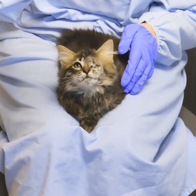 I’m looking for a long-term situation! For the last year I lived with mom and a dog and we did great. Now mom has health problems and the dog and I need to find someone new to care for us. I’m a little scared right now and spend time snuggled under a blanket. I’m used to sleeping with mom on her bed. The volunteers here are working to help me feel comfortable, and I like being petted and brushed. I’m sure that I would adjust well to a new home and become your special companion. I have a pretty grey coat with black stripes and a white chin. Let’s see if we can work something out!