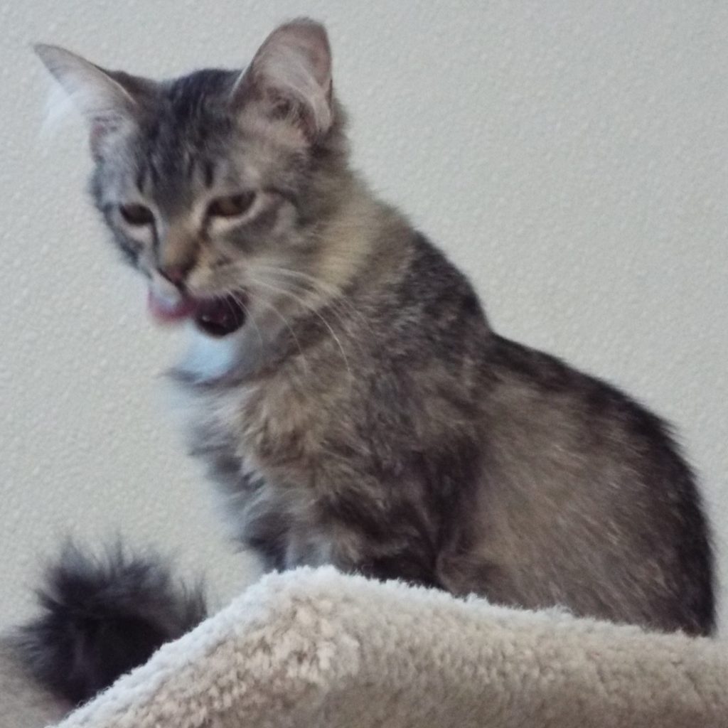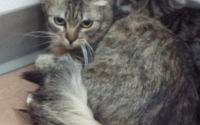 After mom passed away, we four cats were too much for dad to care for. We all came to The Animal League hoping for a new beginning. I quickly found the top perch on a cat tree and from there I can survey my new space. The volunteers come around to pet me and I crave their attention, rolling over to show my appreciation. I’m a big boy with a handsome tabby and white coat. My eyes have a mysterious green tint. I’m looking to start the next chapter in my life with someone who can shower me with love and chin scratches. P.S. No clue on my name…