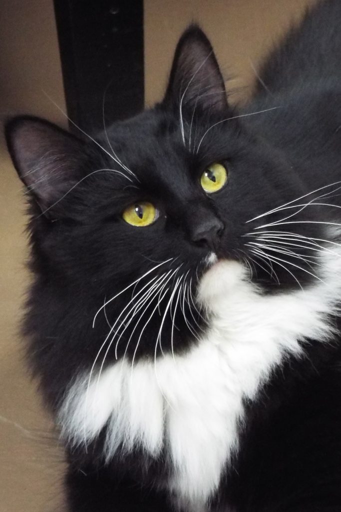 “Walked out my front door and found him lying on my porch.” That’s it. Well, not exactly. Turns out I could hardly walk and was in obvious pain, and after I had x-rays taken, they discovered I had a broken pelvis! I’ve been cooling my heels in an enclosure since ‘cause I wasn’t allowed to walk or jump until it healed, and knowing how active most cats are (and given that I’m only 3) you can imagine that wasn’t MY idea of fun! But it worked, and I’m almost healed, so since I’ve gotten tons of hands-on attention to keep me from getting bored, I’d like you to be sure that continues when we’re together!