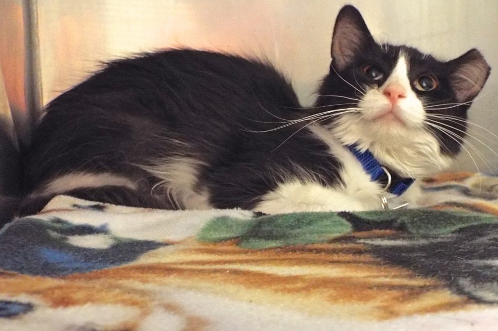 Sometimes well-meaning people bite off more than they can chew! That’s what happened with our mom when she took in a few stray cats, couldn’t afford medical care or to have them spayed and neutered, and ended up with a whole passel of us! Happily, TALGV’s Outreach Program came to the rescue, and here we are, sweet as pie albeit a bit shy at the moment, but all totally eager to find new homes and people to love. I’m a small black and white boy who loves people, gets along with other cats (obviously, since I lived with so many!), and I know that my life is going to be exactly the thing I’ve been dreaming of once I’m settled with you!
