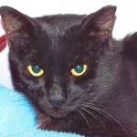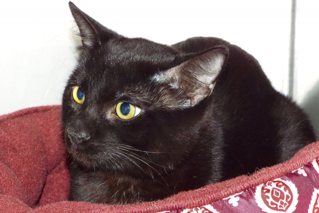 At first glance, you might think whoever named me was one of those comedians who call fat people “Tiny!” Well, that’s actually not the case, ‘cause if you look a little closer, you’ll see that I do have a smattering of “snowflakes” strewn across my black fur so I guess they were actually being clever! I was wandering the area around The Peaks for several months before a kind lady began to feed me, and it took a while for me to warm up to her, but once I did, she said I just loved being petted (especially my ears!) and really seemed to want to come inside. They think I’m about 2 years old, so with lots of living still to do, I really want to put the itinerant life behind me!
