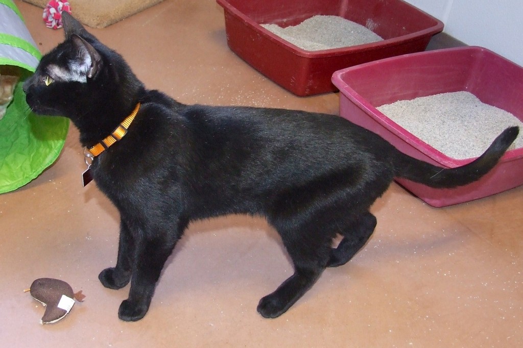 I think it should be written somewhere in the human code of conduct that they are never allowed to move to a new home unless pets are permitted! Well, it would be too late for me now anyway, but it’s just a thought! My not-so-little family consisted of six kids, another cat, and a dog (I sure hope they found a BIG place to live!), and we all got along splendidly. Mom said was very gentle and loved to sleep and play with the kids, loved feather toys, and was just generally an all-around wonderful quiet and laid back lady (I had to be with so much going on!). I’m an adaptable shorthaired black and white gal whose background will undoubtedly allow lots of options for a new home!