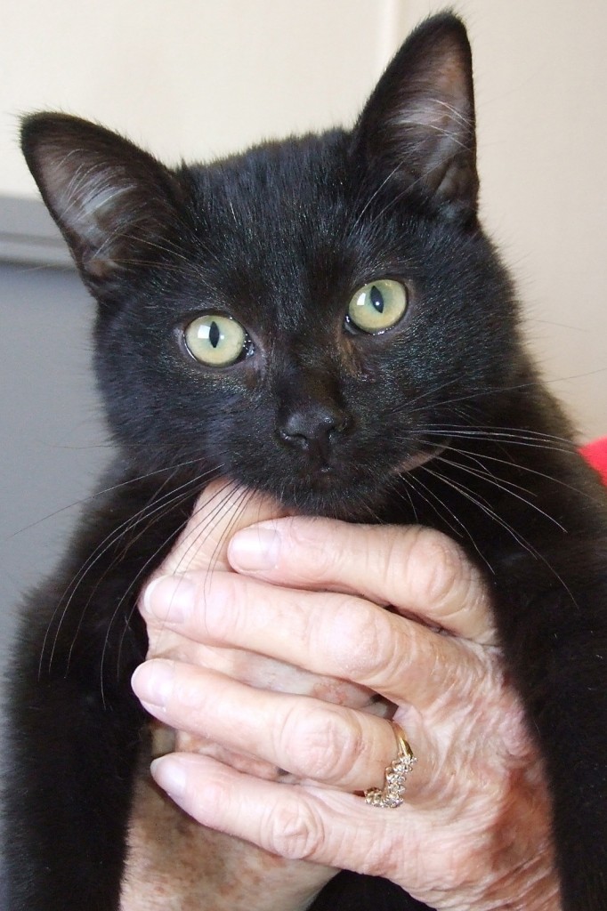 I don’t know why the people who originally adopted me even bothered, as they kept me alone in a room with no furniture and only food, water, and litter because I played too rough with their 3-year-old, and would hit and shout at me when I tried. Needless to say, I never got much socialization until their friend took me in for a few weeks. But now that I’m “out and about” here at TALGV, all I want is a lap to sit and sleep on, a few “action” toys to bat around (like all kittens do), and to try to reclaim the fun I missed in my early life. I’m not even two years old yet, so it’s not too late for you to help me get those fun-filled days back again!