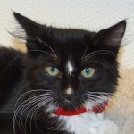 My dad only had me for two months before he moved out of state and decided he couldn’t take me (or my feline and canine friends) with him. You’d think he might have made better plans before adopting us in the first place! Well anyway, now I’m here and hoping that I don’t get “lost” among all the other kittens in residence at the moment (there seems to have been a bumper crop this year!). I’m am adorable medium-haired black and white, 4-month-old girl with a few “stripes” down my nose — thus my name, I guess. As with all kids my age, I’m inquisitive, playful, and into everything, so why not let me check out all the nooks and crannies in YOUR house?