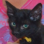 As part of the galaxy of the eight “planet kittens,” I’m happy to report that we’re all here safe and sound and ready to spend lots of time “on earth” with families of our own. Were lucky to be here at all as our trailer home was struck by lightening and our family had to find another place to live (it was obvious that finding somewhere that we could ALL go was nigh on impossible!). We’re solid black “octuplets” and each of us is just as sweet as pie. We’re very young right now, and still at that “too endearing for words” stage, so make sure you get in on the antics and take one (or more!) of us home. “Black is back” and we’re here to prove it!