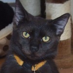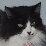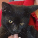 When you’ve lived all your life with one (very quiet) person and no other pets, you tend to be a rather laid back, shy lady. After my mom died, her sister would have taken me, but her husband had allergies, so that didn’t work out. Everyone says I am a real sweetie with a tiny voice who is always glad to see people. I enjoy playing with feathery things and small stuffed toys (I sometimes carry them around and drop them in my water bowl!), just like when I was a kitten. My “auntie” said, “She’s kind, affectionate, and loves to be petted and talked to,” so if you have a quiet life, please make me part of it! Oh, and I come with Free Vet Care for life to boot!
