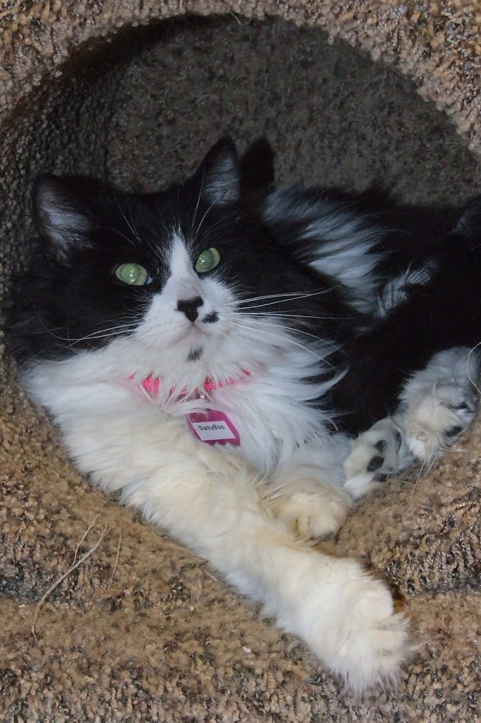 When you’ve lived all your life with one (very quiet) person and no other pets, you tend to be a rather laid back, shy lady. After my mom died, her sister would have taken me, but her husband had allergies, so that didn’t work out. Everyone says I am a real sweetie with a tiny voice who is always glad to see people. I enjoy playing with feathery things and small stuffed toys (I sometimes carry them around and drop them in my water bowl!), just like when I was a kitten. My “auntie” said, “She’s kind, affectionate, and loves to be petted and talked to,” so if you have a quiet life, please make me part of it! Oh, and I come with Free Vet Care for life to boot!
