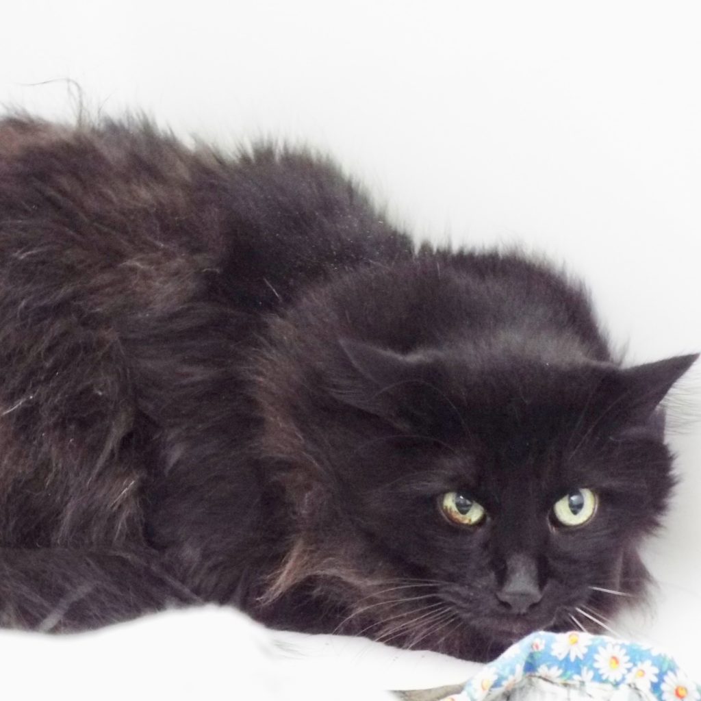 Sad it is to lose your home and your human. That is what happened to my feline companion Blink and me. When our human mom could no longer care for us, we were brought to The Animal League. Not the best trip that I’ve had. I’m scared, hiding in a corner of a catio. My best trip will be when you adopt me and take me to my forever home. At my age, I want to be loved and cared for by someone who enjoys brushing me. I need it! You may notice that my left paw is missing, but that’s not a problem for me. I need a loving human companion. Could that be you? I hope so!