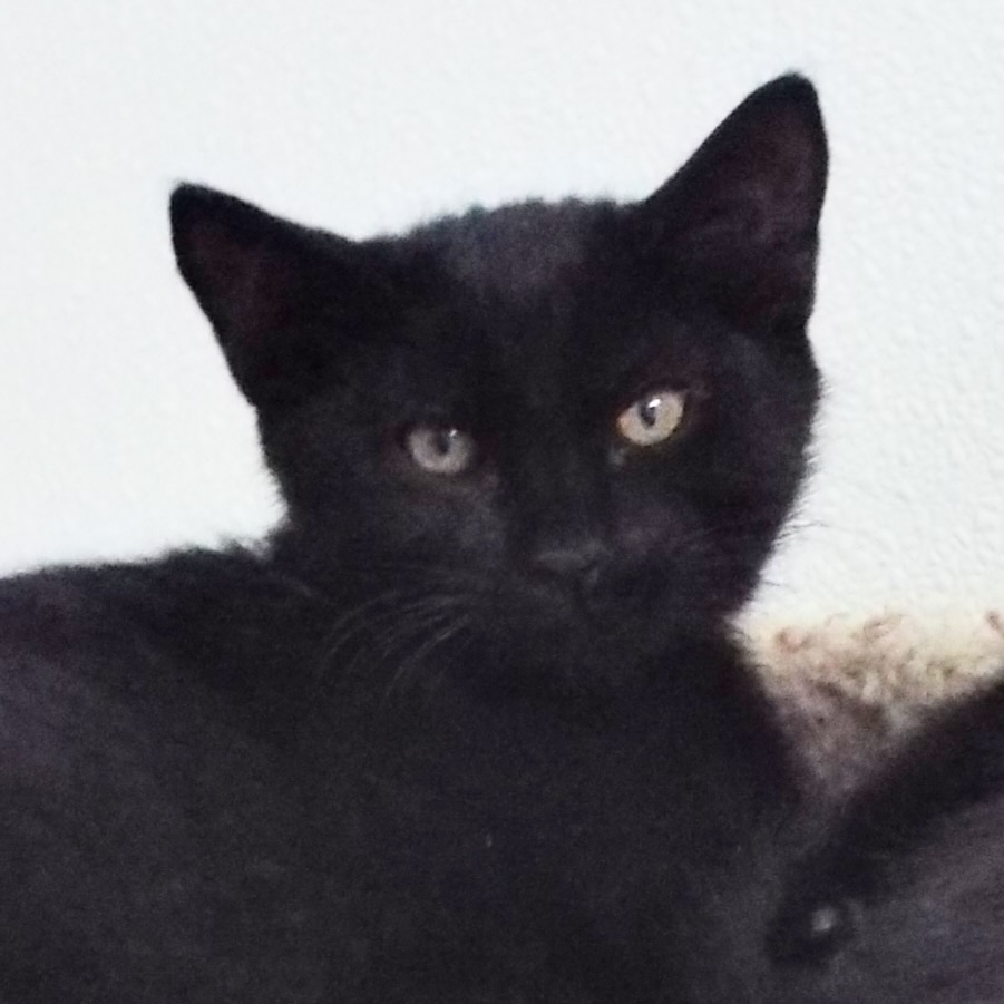 As everyone knows, black goes with any outfit. And if you don’t have fur on your clothes, you just aren’t properly dressed! The Animal League volunteers are caring for me and my sister Whirl. By our names, you can tell that we are part of the Wind Litter. We transferred in from another shelter. We gained weight and confidence in foster care. How we thrive on attention! We aren’t necessarily bonded but live in the same room. Hard to tell us apart but I bet you could if you got to know us. I’m making a shameless plea for head rubs and chin scratches. Oh, and throw in some string toys and balls: ok?