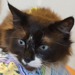 My mom, a long-time volunteer at TALGV, was obviously “into” calicos as she had five of us (all adoptees, of course!), so when she had to go into assisted living, she knew there would be no better place to care for us until we found new homes. Not to toot my own horn, but I’m a drop-dead gorgeous, blue eyed, longhaired “dilute” version, and have a VERY sociable and charming personality to match. I’m the youngest of the bunch, so I’ve got tons of time ahead of me to make your life just as happy as I did my mom’s. Why not “make her day” and take me home so the volunteers can let her know I’ve got a new lease on life?