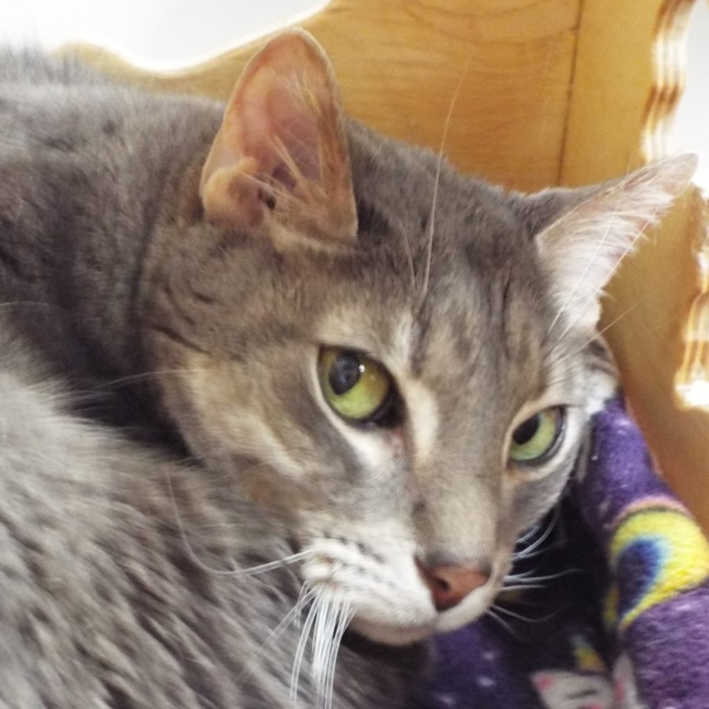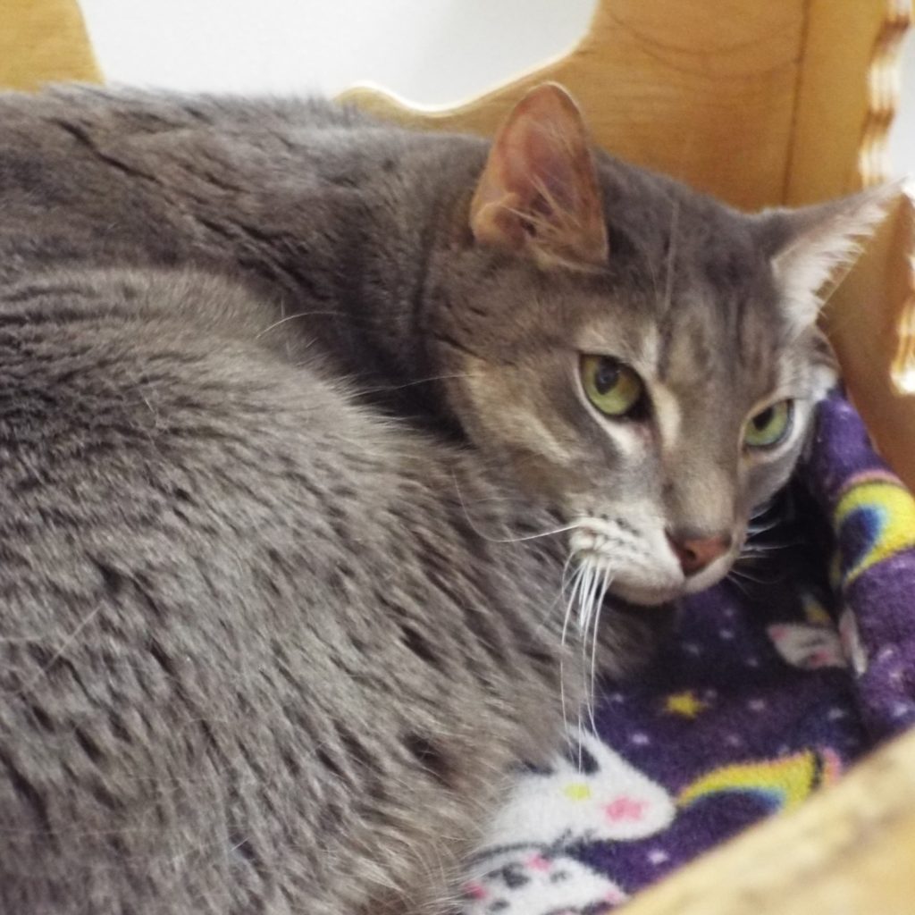 Like my namesake in The Lion King movie, I’ve faced trials and triumphs on my way to my royal destiny. My person had an unfortunate event, a stroke, and here I am at The Animal League awaiting my next home – hopefully, with a royal throne for me! I’m young and healthy, had my vaccines (including rabies) and microchip. I love to be petted, will roll at your feet, and show you my beautifully marked underbelly (it’s tan with dark spots). I have gorgeous yellow/green eyes and gray fur. I’m looking for a lap in which to land. How about yours? Come meet me!