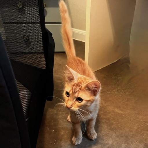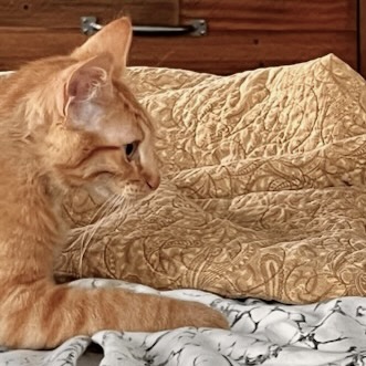 Do you have a sunbeam shining in your window at home that I could bask in? If so, I’d love to meet you! Coming from another shelter, not much is known about me except I was found in The Links neighborhood. I’m a friendly boy. When you pet me, I curl around to nestle my head in your hand. Quiet naps in a cozy bed are a treat, too! My golden eyes accentuate my handsome fur coat markings: stripes on my torso down to the tip of my tail with four white paws. Just imagine! I could be yours if you only come in to meet me. I’m waiting to give you my heart.