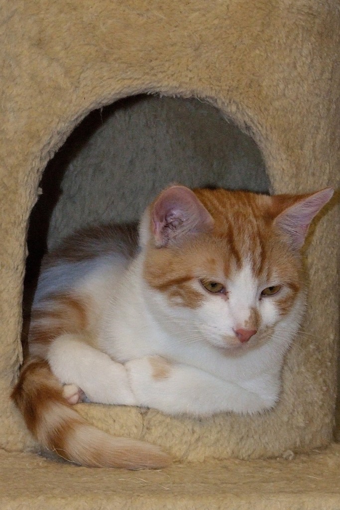 So far, life hasn’t been a big bowl of cream for my brother Chad and me. After our dad died, someone thought they were doing a good deed by leaving us outside and feeding us, but after a few months, we became more defensive, as there were so many threatening things out there. Once upon a time I was a very sweet guy though, and with the help of the volunteers, I’m slowly coming around. I just know that with patience and love in a nice quiet home the “old me” will come to the fore. Everyone feels that is would be easier for us to adjust if Chad and I were adopted together, so this is my plea for you to give us a chance!