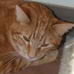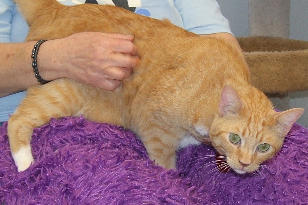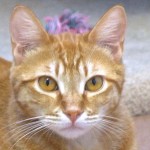 When you’ve lived with twelve other cats and three dogs, you’ve got to be considered a pretty flexible feline, and I am! All of my tribe came to TALGV after my mom went into a nursing home and was obvious we were lovingly cared for because we’re friendly and sweet. If you pet my head, I’ll gladly roll over on my cat tree and let you brush me all over. I love to check out the “goings on” at the League but would rather have cat tree and window seat of my very own. I’m a shorthaired orange tabby guy who’s yearning for the chance to show you just how easy going and loving I can be. Maybe, if you love me, you’ll also consider one of my friends for twice the love! (Swoosh, Muggles, Brielle, Casper)