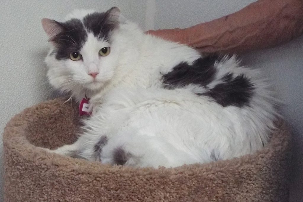 Before coming here, I was one of fifteen dogs all living together in the same place! Different breeds, genders, ages—mainly small to medium small—and we all got along. Still do! We’re a sweet, loving bunch. But when our people moved and couldn’t take everyone with them, most of us came here—some of us shy, others very friendly, and each one hoping for the same thing: A new, comfy, loving home. We’re already experiencing new things; leashes and doggie doors were unknown to us, and we’ve not been around small children. I’m a 2-year-old gray and white Staffie mix female, 49 pounds, sometimes full of vim and vigor, and always happy to be with friends. Lively and fun, I have a quiet dream of being loved by you just for being me.