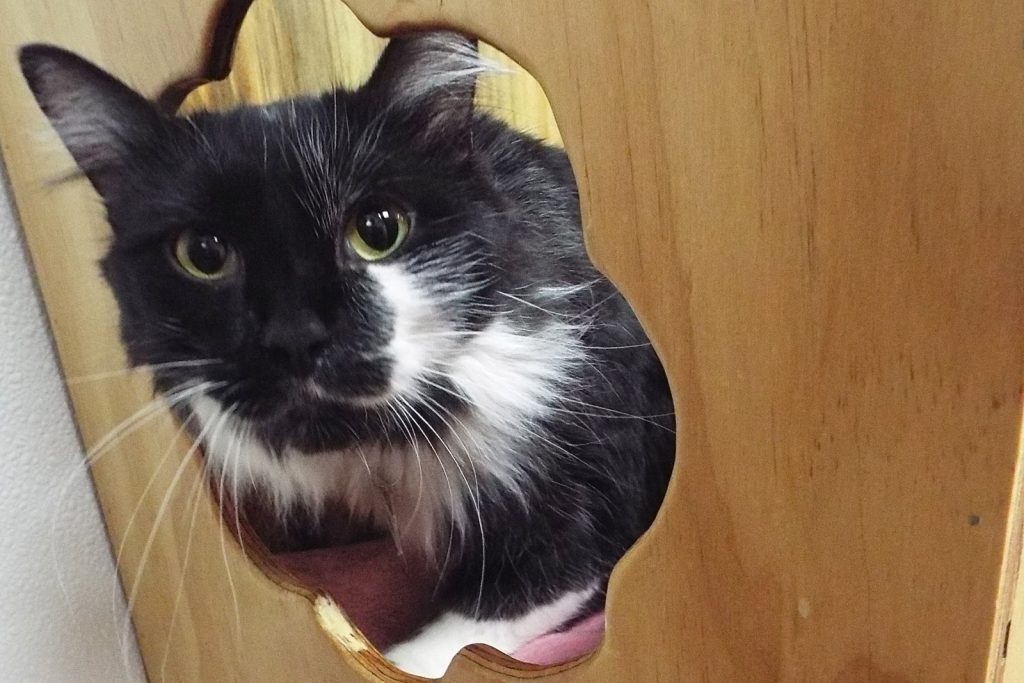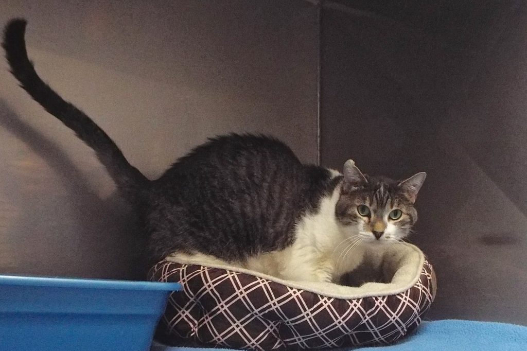 Don’t have time to run to the door right away when the doorbell rings? Well, if only I had opposable thumbs, I’d get it for you! My mom said, “Rayita is a greeter and lies on her back to say ‘hi’ to anyone at the door. Although she’s sometimes independent, she loves to climb into people’s laps to sleep or be petted.” My brother, Moat, and I came here all the way from Puerto Rico with our family, but they’ve developed allergies to us, so we’ve both got our sights set on a new home. I’ll bet YOURS would fit just fine, so why not give this 6-year-old gal a new favorite spot to hunker down?